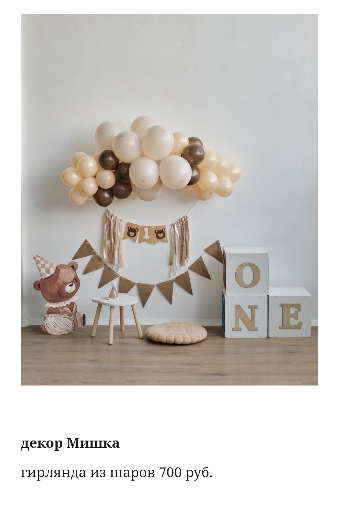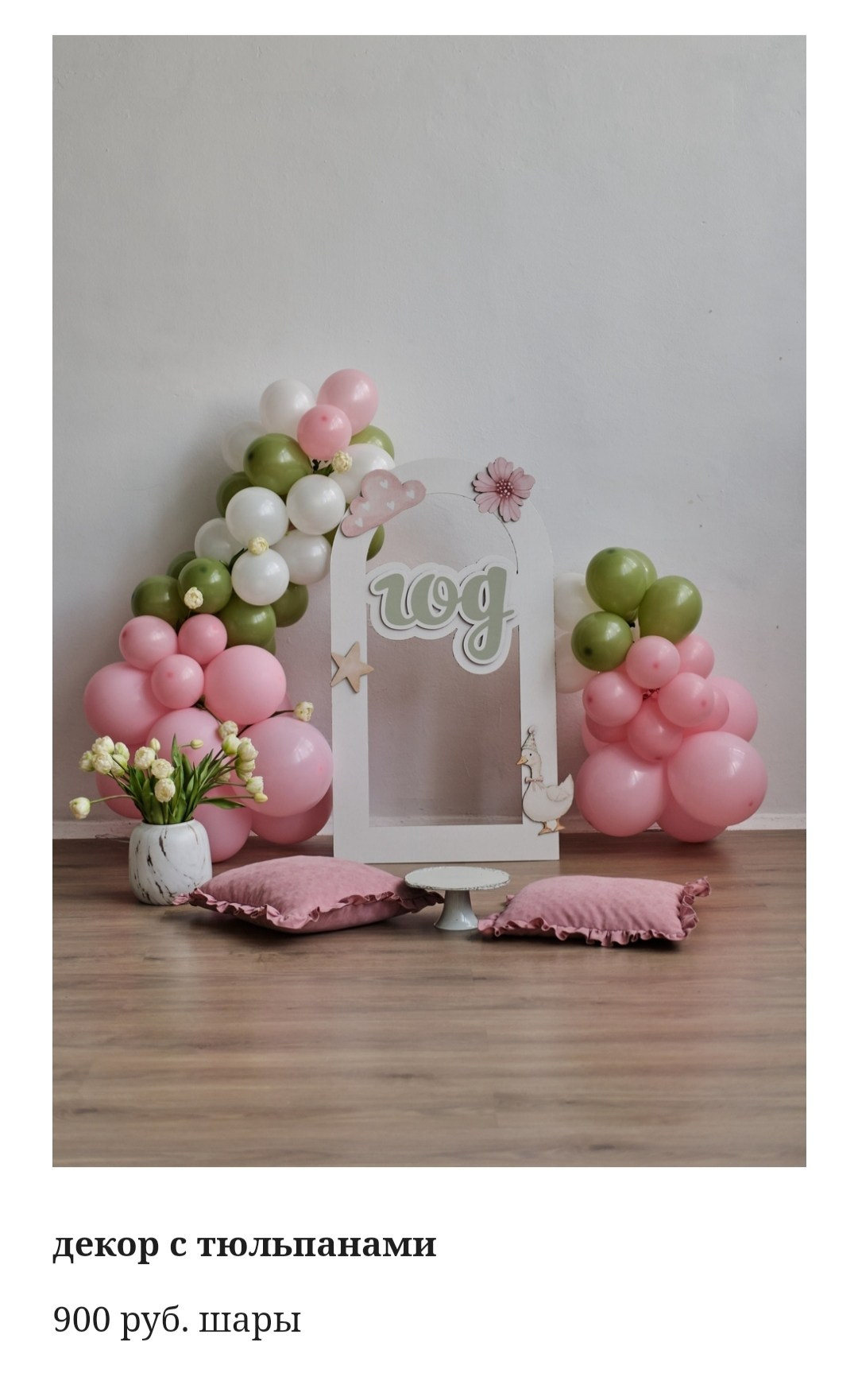 Отдельно вы доплачиваете за шарики. От нас мы предлагаем вам воздушные гирлянды только те, что на фото ниже. Самая маленькая — 700 руб. (110-120 см) Рассчитаны на ребенка. Заказ гирлянды минимум за 7 дней. Гирлянду из шаров забираете с собой.
